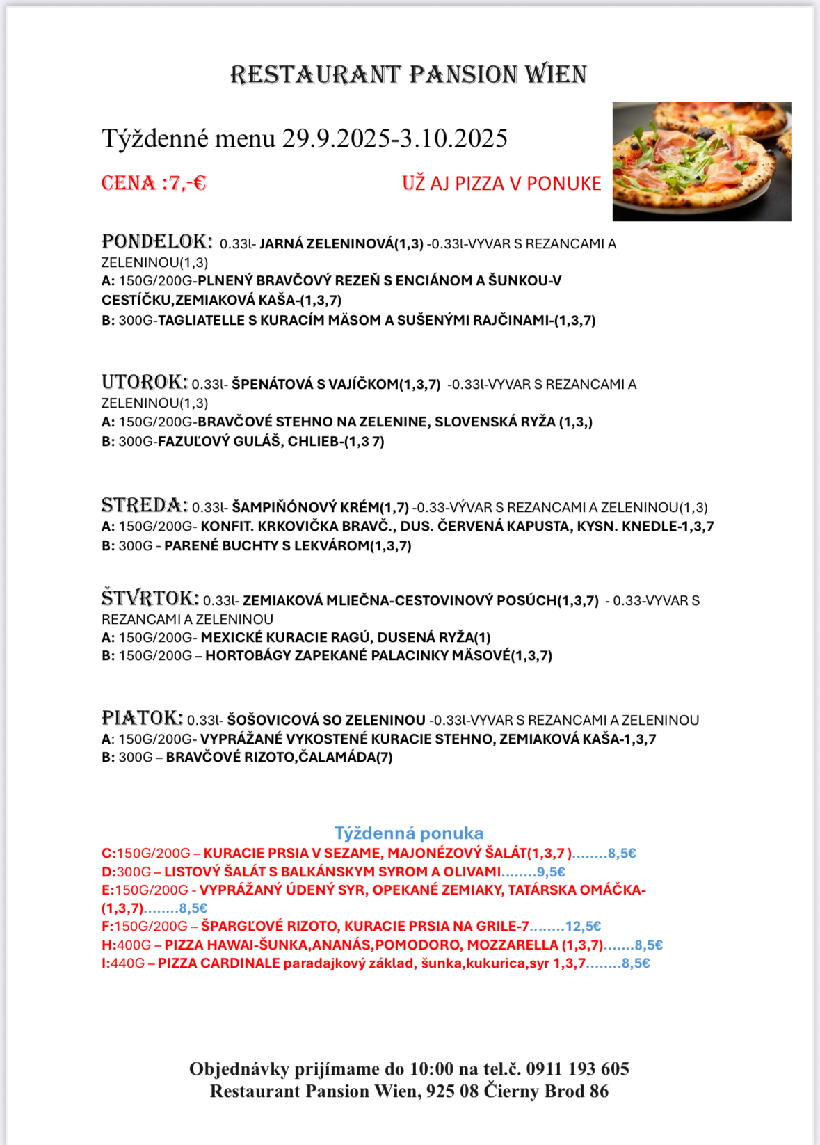 Kuchyňa: Pondelok -Sobota 12:00-20:30